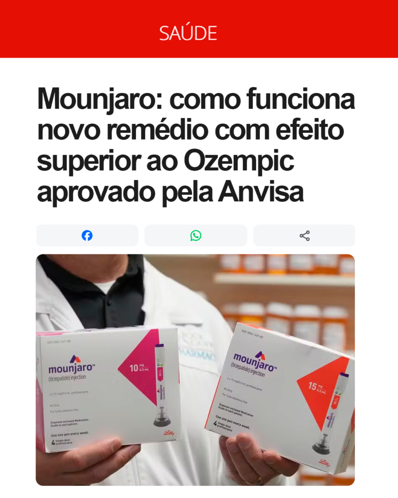 Diferente de outros medicamentos, como o Ozempic, que ativa apenas 1 hormônio (GLP-1), o Mounjaro ativa 2 hormônios essenciais (GLP-1 e GIP), dobrando a eficácia na queima de gordura.